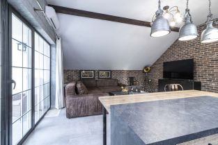 Общая площадь предложения 450 м2. Внутреннее пространство поделено следующим образом: на первом этаже просторная кухня-гостиная, санузел и спальня. Отдельно выделена гардеробная, где можно хранить не только вещи, но и бытовую технику, избавляя пространство от визуального шума и не нарушая целостность стилистической концепции. На втором этаже 3 просторные спальни, каждая со своим санузлом. На третьем этаже совершенно отдельное пространство для личного отдыха или гостей, выполненное в стиле лофт. Кухонный гарнитур, обеденная зона и просторный диван для просмотра кинофильмов на большом экране. Также здесь 2 спальные комнаты и санузел с душевой и постирочной. Гардеробная комната. В этом доме действительно стоит побывать лично, чтобы насладиться атмосферой уюта и гармонией в деталях.