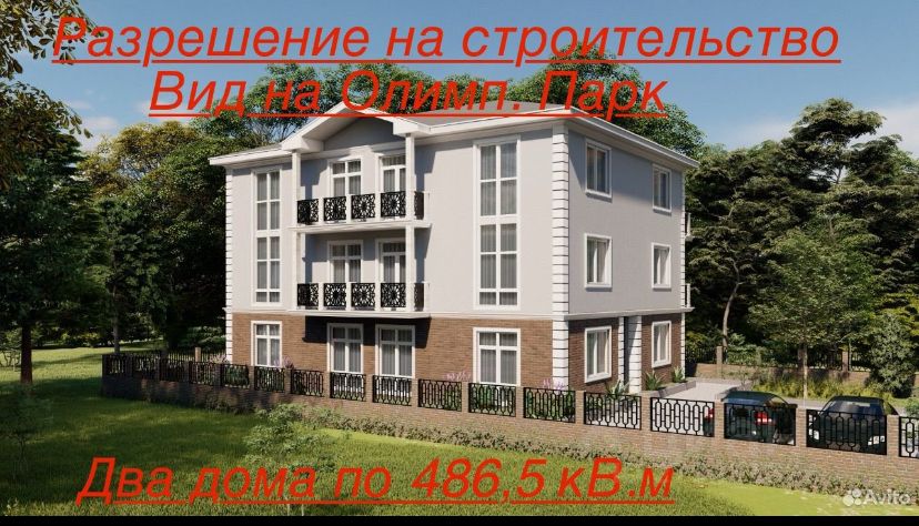 Продаётся готовый проект под застройку двух жилых домой, каждый по 486,5 кВ.м, площадь застройки под каждый дом- 179 кВ.м в 3 этажа. На участке есть не большой склон, до аргиллита 6 метров, свет, вода, газ, централизованная канализация проходят перед заездом на участок. Цена за весь проект земля+разрешение. Земля видовая с хорошим видом на олимпийский парк. Земля находиться в тихом элитном коттеджном проулке, напротив аэропорта, в 150 метрах от центральной федеральной дороги по переулку Аэровокзальному. Собственник.