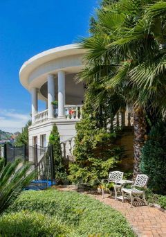 На территории особняка расположен большой бассейн и летняя ротонда с полноценной кухней и мангальной зоной, откуда открывается завораживающий вид на морское побережье и парусный клуб. Дополнительно предусмотрено отдельное помещение для прислуги и обслуживающего персонала.