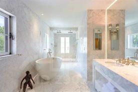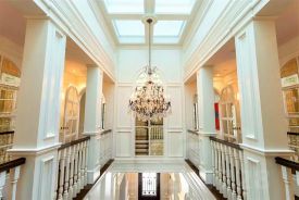 Сам дом площадью 1500 метров распланирован в 9 спальных, 9 санузлов, гардеробные, просторный зал с двойным светом, кухня для персонала, гостевые апартаменты, винный погреб, SPA комплекс с бассейнами, банным комплексом, солярием. Два кабинета в разных крыльях дома, сигарная комната, обеденная зона, кинотеатр, детская комната, каминная комната, библиотека и тд.