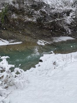 Через дорогу от участка горная река Псахо. Рядом красивое место для купания куда летом приезжают отдыхать все знающие местные. Детская площадка. Ровное место!