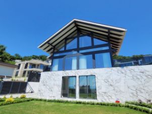 Продаётся просторный двухэтажный дом с панорамным видом на море! Общая площадь дома составляет 250 квадратных метров. Уже с первого этажа открывается чудесный вид на морскую гладь. Архитектурный стиль дома - фахверк.