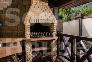 В гостиной (на первом этаже) и в кабинете (на мансарде) имеются камины на дровах. На террасе, в мангальной зоне, оборудована печь барбекю (также на дровах).