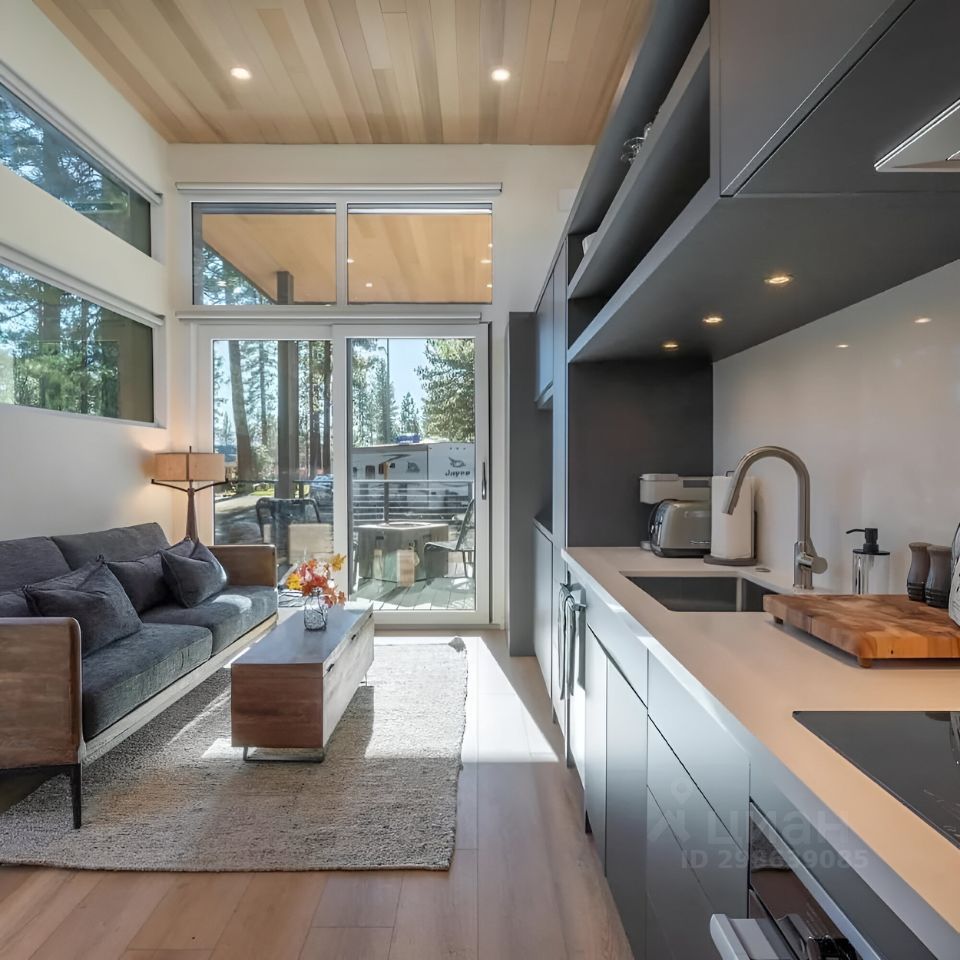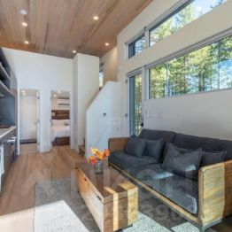 На первом этаже дома расположены просторная гостиная с камином, уютная кухня, оборудованная всей необходимой бытовой техникой, и гостевая спальня. Второй этаж включает в себя три спальни, каждая из которых имеет свои видовые характеристики. В каждой спальне есть своя ванная комната, что обеспечивает максимальный комфорт и приватность.