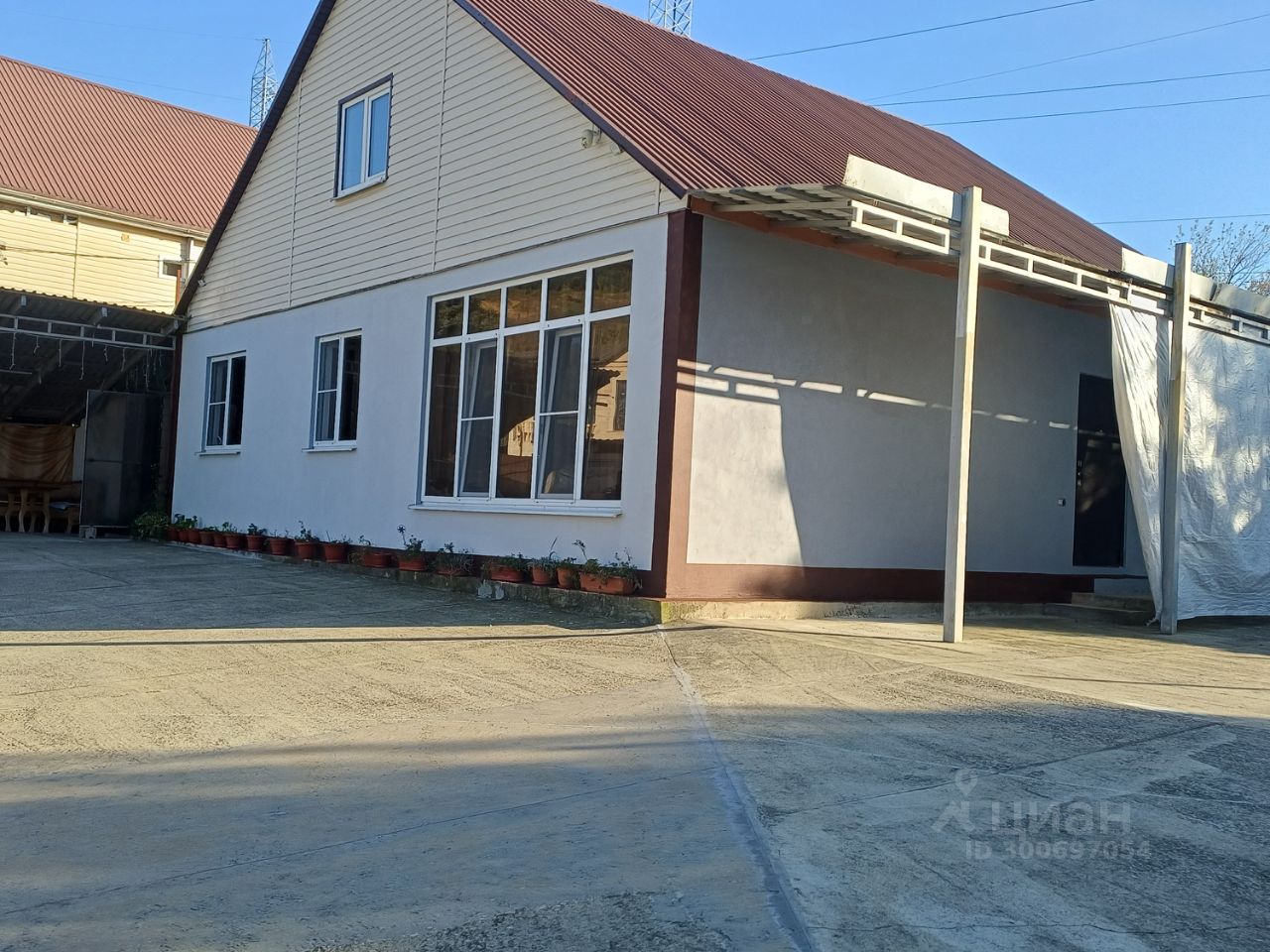 Есть уличный санузел,летняя кухня с горячей водой,кладовка. С второго этажа видно море,по желании можно достроить второй этаж.