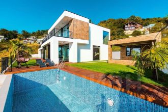 Представьте идеальное сочетание роскоши, комфорта и релаксации - именно это предлагает вам этот великолепный дом с видом на море, собственным бассейном и баней.