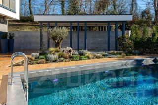 Земельный участок - 11 соток. На территории большой круглогодичный бассейн с противотоком, летняя кухня, зона барбекю и просторная беседка.