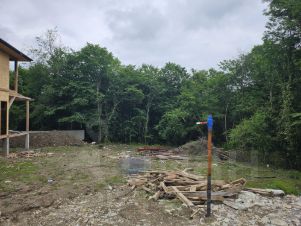 Подъезд к участку по бетонной дороге, рядом с участком лес