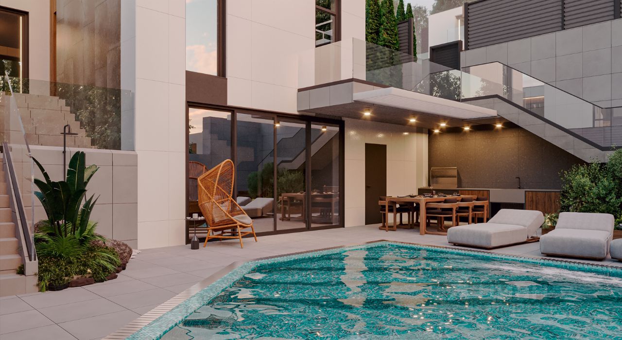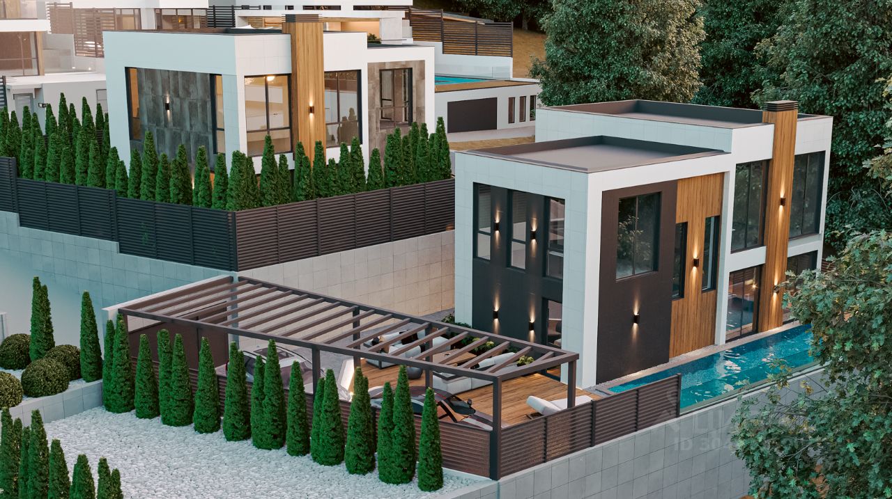 Представляем вам стильный и современный коттедж площадью 226 м² на 3 этажах, выполненный в стиле хай-тек.