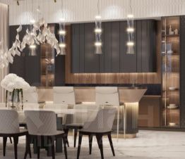 Кухня-столовая: Современная кухня, оборудованная по последнему слову техники, и просторная столовая, где можно наслаждаться семейными ужинами.