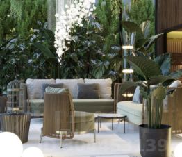 Природный оазис: Входная группа встречает вас водопадами, ручьем и экзотическими растениями, создавая атмосферу спокойствия и умиротворения.