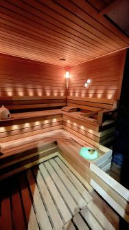 В доме есть гараж на две большие машины с выходом в дом, мастерская, спортзал, баня из канадского кедра на дровах и купель. Во дворе создан ландшафтный дизайн, а также имеется беседка с барбекю, бассейн и качели для отдыха и развлечений.
