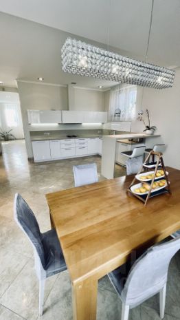 Мебель выполнена из массива, а элементы арт-декора из дуба, что добавляет элегантности интерьеру. Просторная терраса с панорамным видом на горные вершины Сочи и Красной Поляны приглашает насладиться красотой окружающей природы.