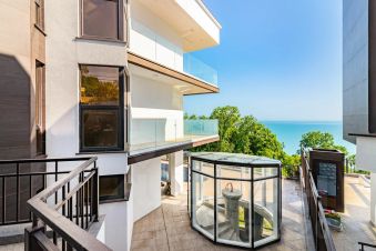 Площадь коттеджа составляет 425 квадратных метров, земельные участки имеют площадь 3 сотки, а количество этажей 3. Внутри коттеджа расположены 4 мастер-спальни, спортзал, кухня-гостиная, сауна, камин, просторные балконы и террасы. Мастер-спальни оборудованы персональными балконами с видом на морской пейзаж. Коммуникации включают скважину для воды, лос для водоотведения, газ и электричество мощностью 15 кВт.