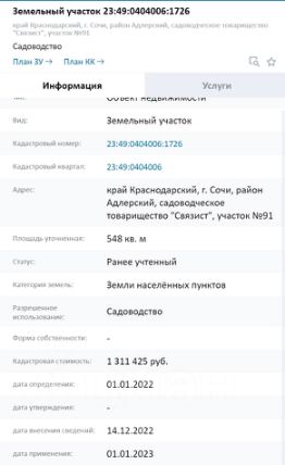 Кадастровый номер участка 23:49:0404006:*** указал продавец