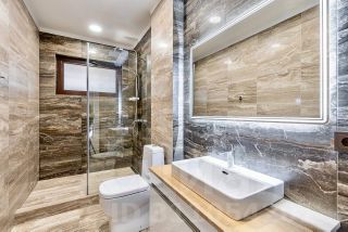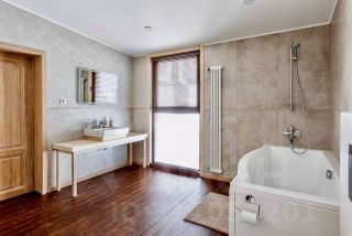 При строительстве уделялось особое внимание экологичности: в отделке использованы качественные натуральные материалы, а сантехника произведена в Германии, Швейцарии и Японии. По всему дому установлены теплые полы.