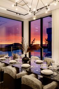 Современный стиль с элементами минимализма и функционального дизайна. Используются только высококачественные материалы: натуральный камень, дерево, стекло.