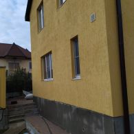 Надёжный и тёплый: ленточный фундамент, стены из шлакоблока , дом утеплён с внешней стороны пеноплексом и отделан короедом, ПВХ окна. При окрашивании дома использован стойкий пигмент (жёлтый цвет). Цоколь утеплён (нет финальной отделки), оштукатурен. Крыша двускатная, покрыта металлопрофилем.