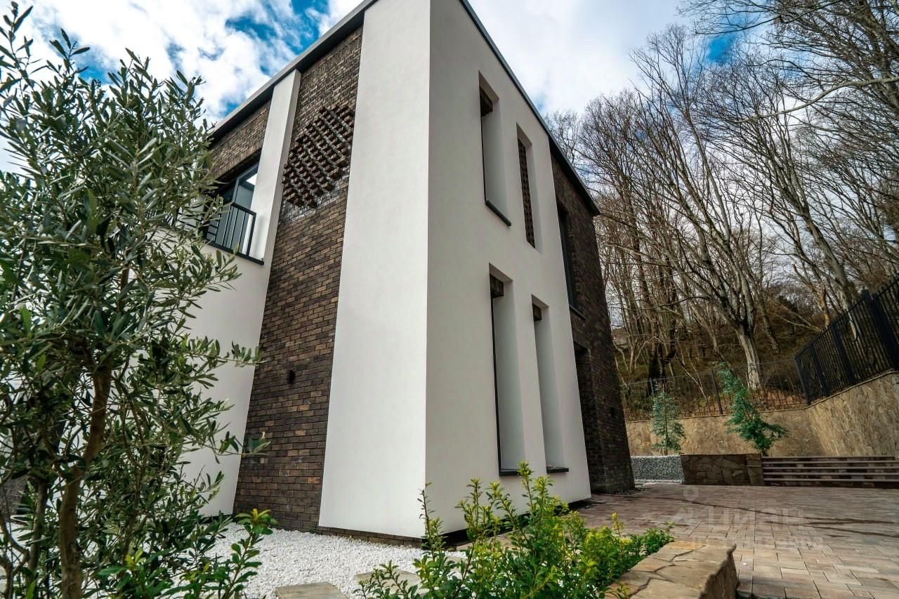 Снаружи дом выделяется стильным оформлением, где кирпичная кладка гармонично сочетается с гладкими белыми стенами. Большие панорамные окна обеспечивают естественное освещение и открывают потрясающий вид на природу вокруг. Просторная терраса на первом этаже идеально подходит для утреннего кофе или вечерних встреч с друзьями.
