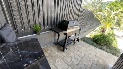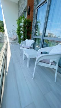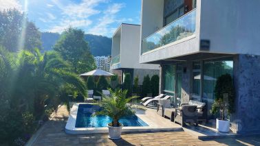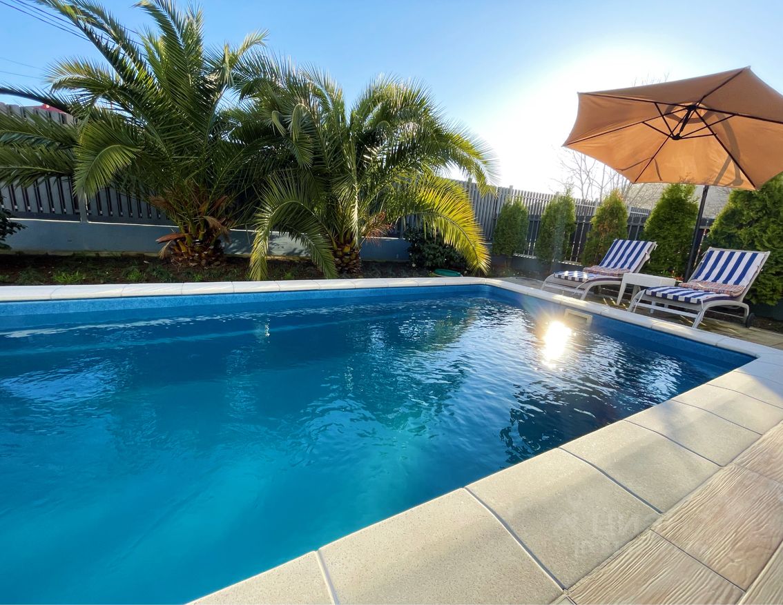 Территория ухоженная и богата ландшафтным озеленением-высажены пальмы, камелии, туи и другие растения ,также созданы все условия для комфортного времяпровождения : зона барбекю и зона отдыха с террасной мебелью, бассейн с шезлонгами .Также можно организовать дополнительную зону отдыха на эксплуатируемой кровле самого дома , где уже проведены вода, электричество , канализация.