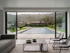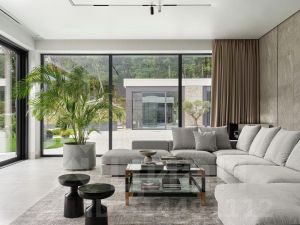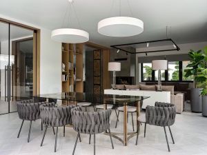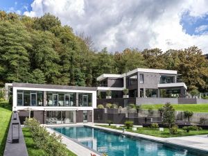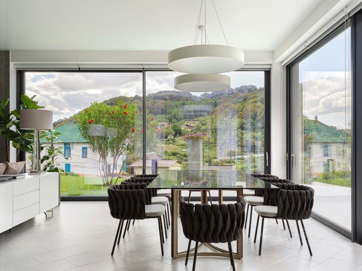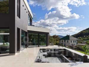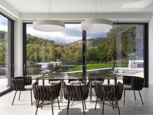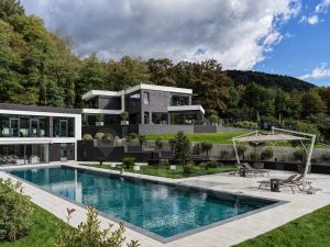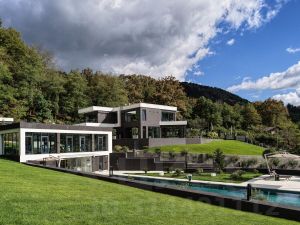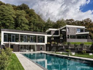 Площадь дома 584 м²: продуманный дизайн с эффектом воздушного пространства благодаря высоким потолкам и панорамному остеклению