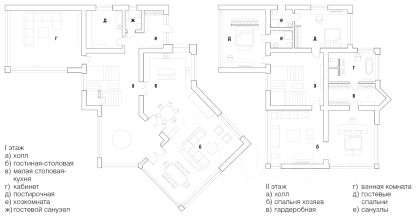 Планировка просторная гостиная, объединенная с кухней-столовой, мастер-спальня с собственной ванной и гардеробной, гостевые спальни, кабинет, зона SPA и релакса