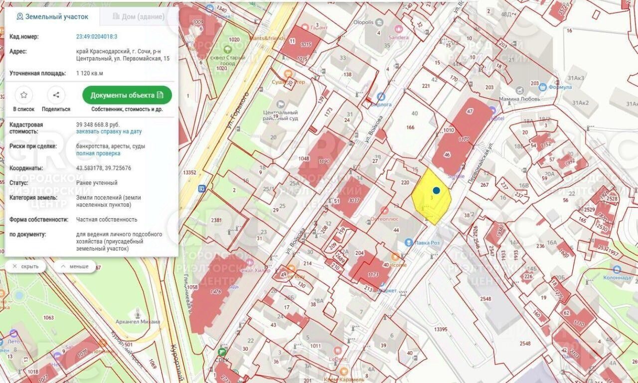 Мы предлагаем вашему вниманию уникальный земельный участок по адресу: Первомайская улица, микрорайон Центральный, Центральный район, Сочи, Россия. Этот замечательный участок всего в 830 метрах от берега моря - идеальное место для осуществления ваших самых смелых коммерческих проектов.
