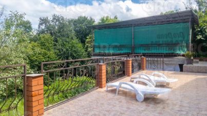 Общая площадь дома составляет 300 квадратных метров, а на участке площадью 5,8 соток расположены две крытые террасы, летняя кухня, сауна и терраса для шезлонгов.