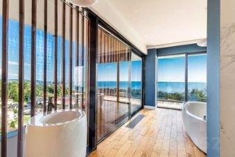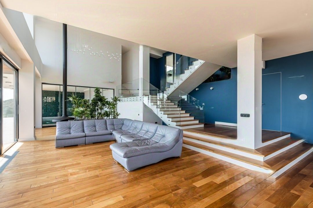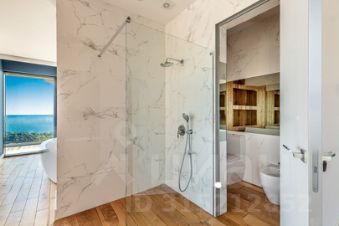 На территории дома, занимающей 8 соток, расположен подогреваемый бассейн, где можно насладиться купанием в любое время года. Ландшафтный дизайн придает участку красивый и ухоженный вид. Особенно привлекательным является супер вид на море, который открывается из окон и с террасы дома.