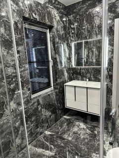 Второй этаж состоит из просторной мастер-спальни с индивидуальной ванной комнатой, гардеробной и зоной отдыха. А так же из детской комнаты и рабочего кабинета.