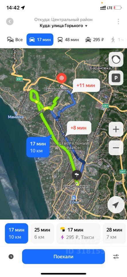 Посмотреть участок можно в любое время самостоятельно. Территория открытая, без ограждения, проезд свободный. Набираете в Яндекс.Карты адрес: г. Сочи, ул. Восточная, д. 85 и система прокладывает маршрут прямо до участка. От остановки общественного транспорта "Целинная улица, 57" расстояние до участка 0,9 км