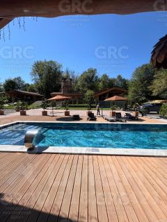 На территории расположен бассейн 124 метра с зоной джакузи, противотоком и водопадом! Представьте себе, как приятно окунуться в теплы воды после долгого дня или провести летний день на свежем воздухе.