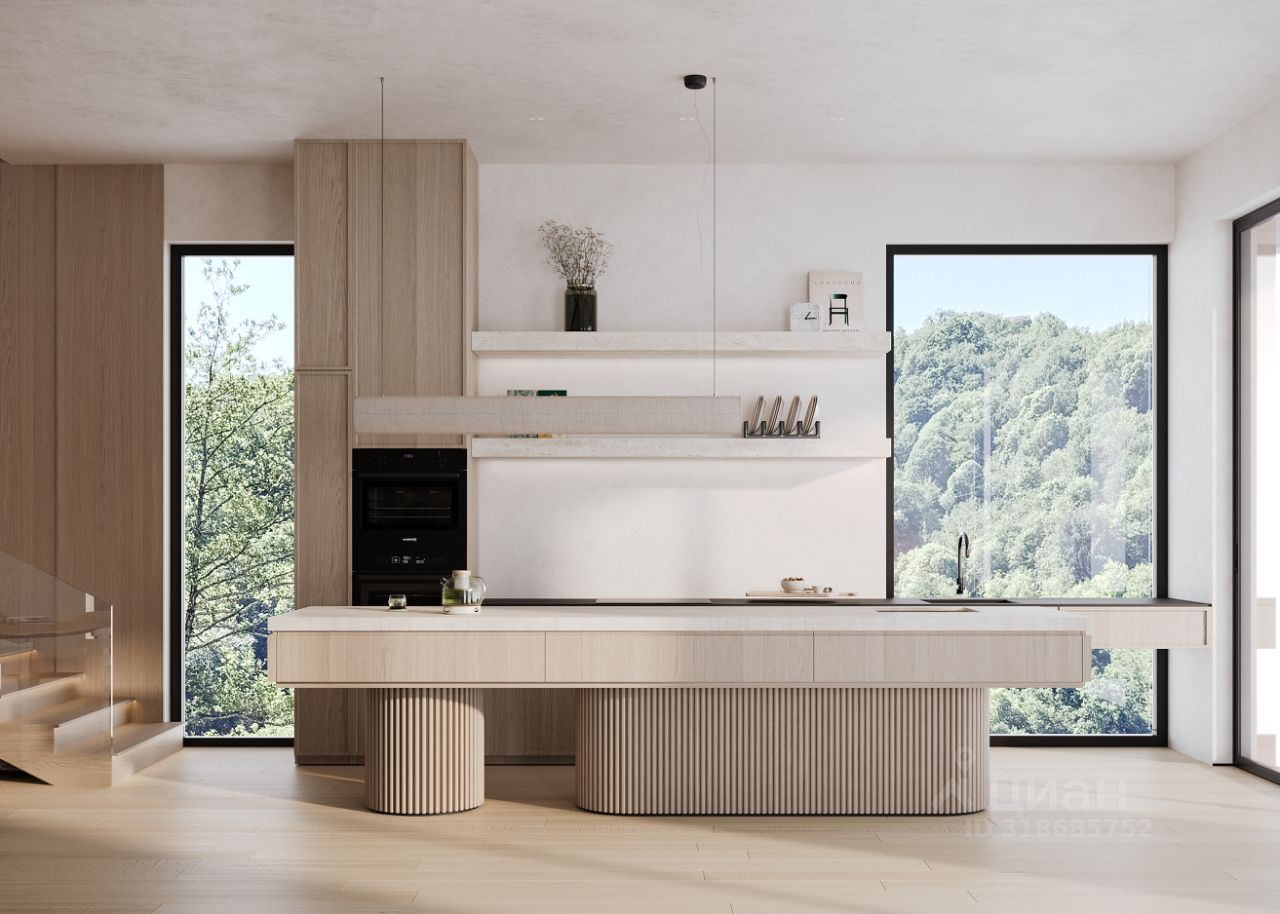- Премиальные материалы отделки фасада (термоясень, испанский микроцемент, бежевый сланец брекчия)