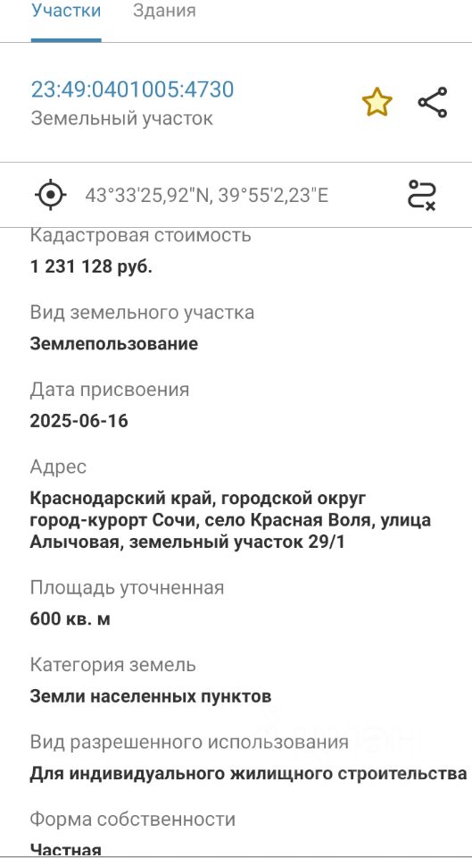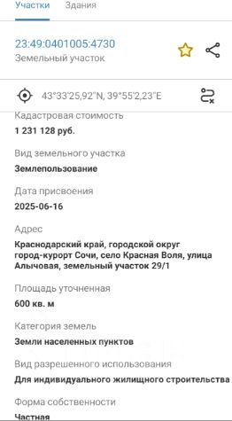 Кадастровый номер участка 23:49:0401005:*** указал продавец