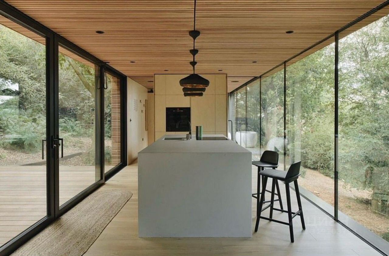 Дома монолитные, отделка фасада натуральный камень, алюминиевый профиль окна.