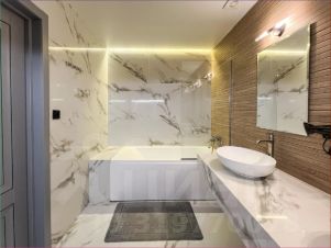 Три комфортные спальни с двуспальными кроватями для полноценного семейного отдыха или размещения гостей. В одной из спален оборудован собственный санузел и вместительная гардеробная комната.