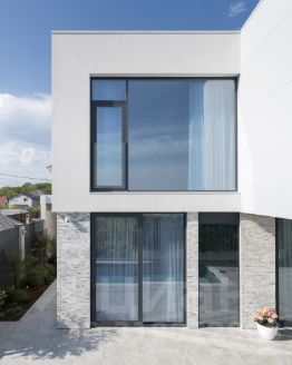 Качество и стиль: Премиальная отделка, панорамное остекление, современный бассейн, возможность интеграции системы умный дом.