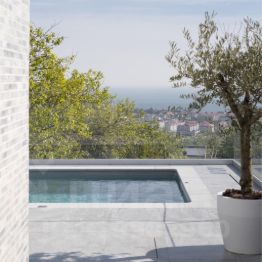 Терраса, переходящая в зону бассейна и шезлонгов, идеальна для отдыха в теплое время года.