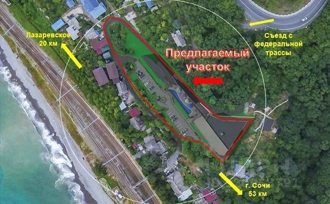 От СОБСТВЕННИКА продается земельный участок площадью 4000 кв.м. (право собственности), с кадастровым номером: 23:49:0114002:1007, расположенный на побережье Чёрного моря (100 м до береговой линии), 53 км к северо-западу от Центрального Сочи, в курортном поселке Чемитоквадже (Лазаревский р-н).