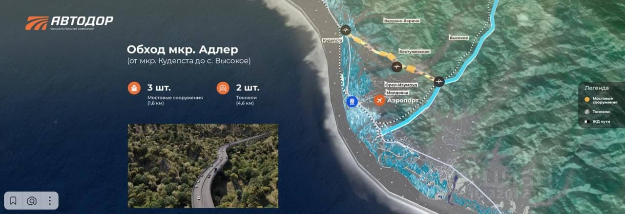 Строительство трассы Южный Обход в ближайшие 2 года обеспечит Вам доступ от участка до центра Сочи в течение 20 минут, а также доступ в Красную Поляну за 30 минут.
