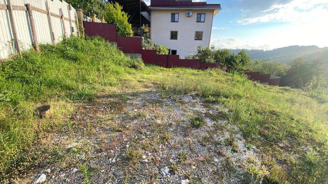 Участок правильной формы, с небольшим уклоном вниз. Это позволит устроить двухуровневое зонирование на верхнем уровне парковка и дом, на нижнем уровне можно обустроить бассейн, баню и фруктовый сад. У соседей растут инжир, гранаты, лимоны.