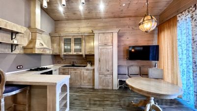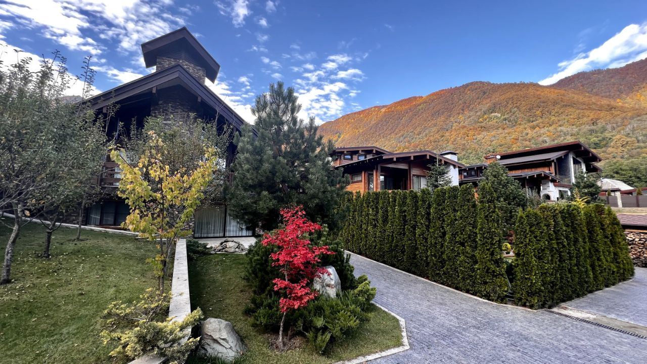 Вилла расположена среди живописных гор на Красной Поляне, состоит из трех домов в Стиле Шале на участке земли площадью 15 соток.