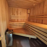 На небольшом участке присутствует все самое необходимое: гараж, бассейн, ландшафт, эксплуатируемая кровля с зоной отдыха и барбекю. Внутреннее пространство дома очень объёмное, просторная кухня-гостиная на первом этаже здания. Второй спальный этаж имеет современное планировочное решение, спальни с санузлами и гардеробом. На нулевом этаже здания расположена баня с зоной отдыха, имеющая отдельный вход как с улицы так и внутри дома.