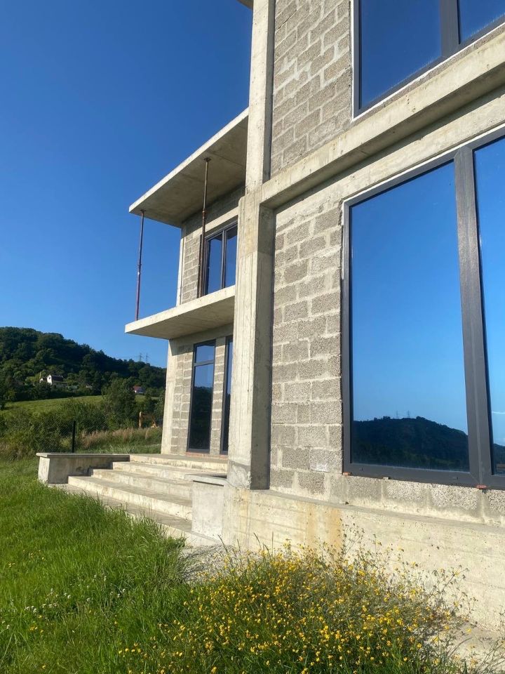 Везде Оконный профиль антрацит стеклопакеты стоят термоглаз защита от солнца и сбережения тепла , двойной стеклопакет с хорошей дорогой фурнитурой-шов между окном и стенами промазан герметиком Стиз.