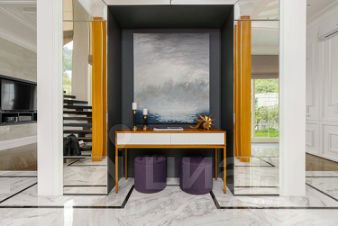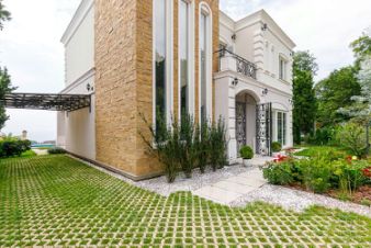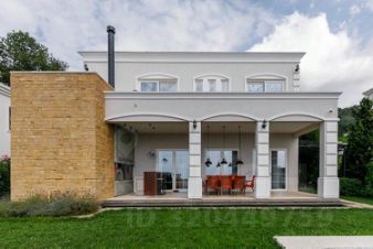 Дом выполнен в современном стиле с использованием высококачественных материалов. Просторные фасады с панорамными окнами обеспечивают великолепный обзор и наполняют внутренние пространства естественным светом. Архитектура подчёркивает гармонию с природой, интегрируя элементы ландшафтного дизайна и экологической устойчивости.