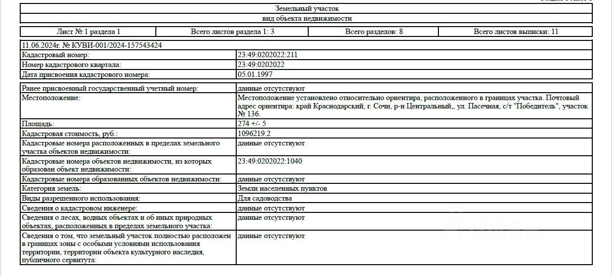 Кадастровый номер участка 23:49:0202022:*** указал продавец