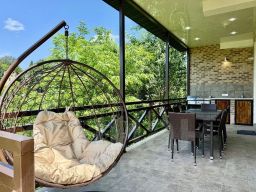 Просторный 3-этажный дом площадью 250 м² с бассейном, сауной и видом на горы. Построен на ухоженном участке 10 соток. Идеально подойдёт для круглогодичного проживания или отдыха большой семьи.