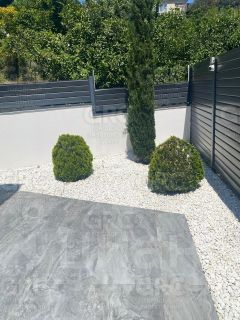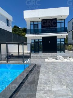 На участке в 4 сотки вы найдете бассейн размером 35 метров и гараж на два автомобиля. Ландшафтный дизайн придает особое очарование этой недвижимости. Удобная транспортная доступность: автобусная остановка и магазины всего в 100 метрах, аэропорт в 8 км, а до моря и Олимпийского парка - 10 км. Наслаждайтесь панорамными видами на горы и море в этом тихом районе. Ваш дом ждет вас!