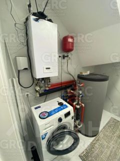 Дом имеет продуманную планировку: на первом этаже вас встретит просторный коридор с гардеробной, уютная спальня, кухня-гостиная и санузел. На втором этаже расположены три спальни, каждая с собственной гардеробной. Центральные коммуникации включают электричество мощностью 15 КВт, водоснабжение, локальную систему очистки и газ.