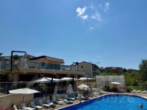Рядом располагаются пансионаты и гостиничные комплексы, предоставляющие возможность круглогодичного пользования открытыми и закрытыми бассейнами.